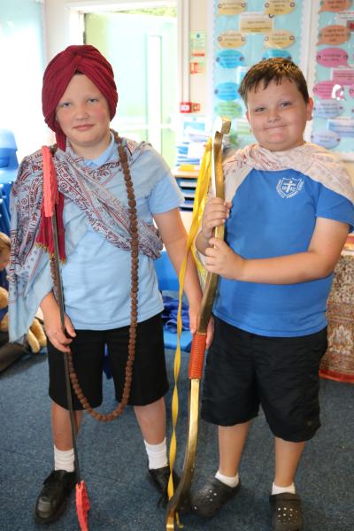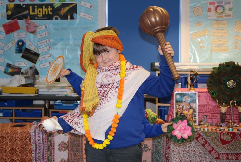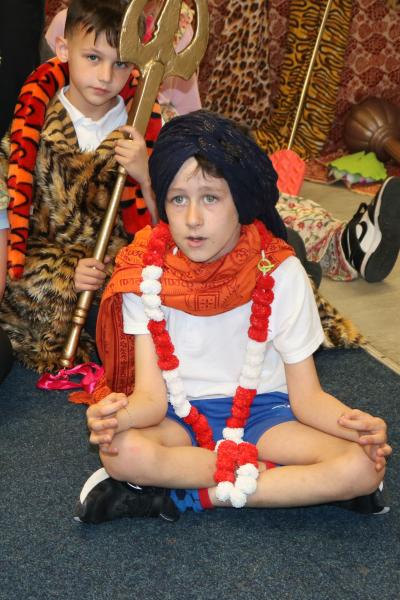 During the event the children used Indian puppets to recount stories they had heard in their lessons and were invited to dress in the Hindu clothes and headgear to represent the Gods. They worked in pairs to perform a rhythmic 'stick dance' or Dandiya and later took part in a 'Question and Answer' session, where they learned so much about following the Hindu faith. The experience ended with the children choosing painted Diya tealight lamps, which are used in Diwali - the Hindu festival of lights.